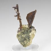 This beautiful specimen of Native Copper features a pleasing combination of defined Spinel-twins and well-formed crystals intergrown to create a display quality miniature. The piece is highlighted at the top by a wonderful dodecahedral crystal of Copper with both smooth well-formed positive facesData last checked on 23rd Aug 2021 - specimen may no longer be available
