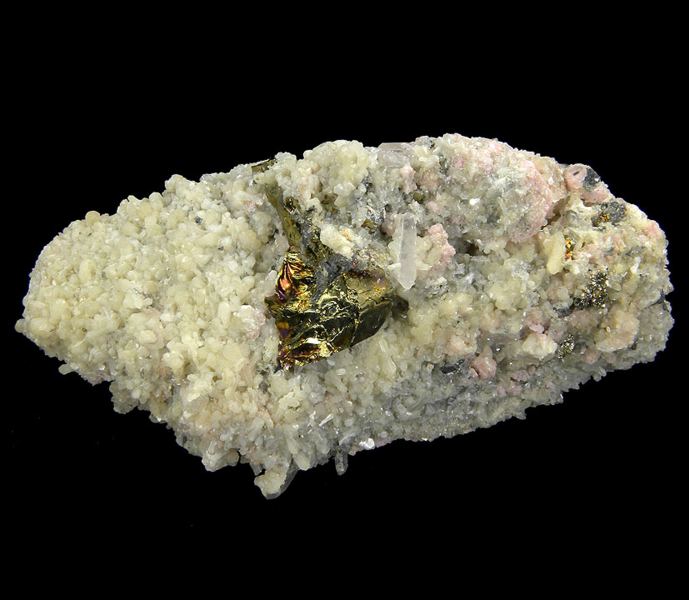 Rhodochrosite with Galena, Chalcopyrite, Bornite, Quartz