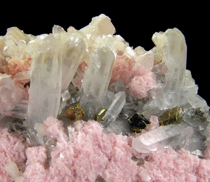 Rhodochrosite with Fluorite, Sphalerite, Pyrite, Quartz