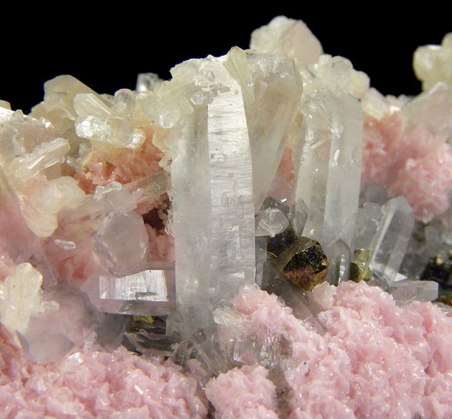 Rhodochrosite with Quartz and Rhodochrosite epitactic Quartz