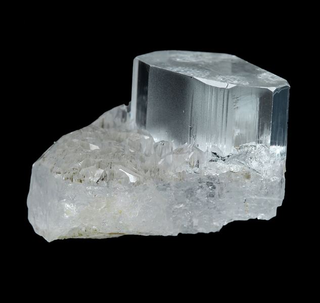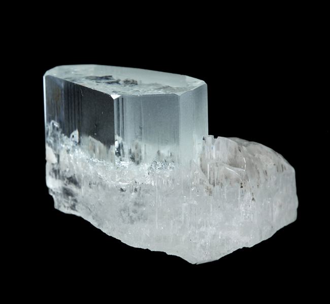 Beryl / (var:“Aquamarine”) with Muscovite on Albite