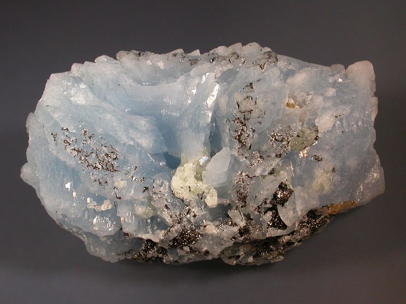 Fantastic blue prehnite with curved lustrous crystal form and a deep translucency when back lit. The colour is superb and changes dramatically according to the lighting from a rich sea blue in sunlight to a pale lavendar blue in artificial light. Small amounts of graphitic matrix are attached at the base and back. Minor contacts and peripheral damage but displays well and is in excellent condition compared to many from this find. New find for 2013.Data last checked on 11th Aug 2021 - specimen may no longer be available