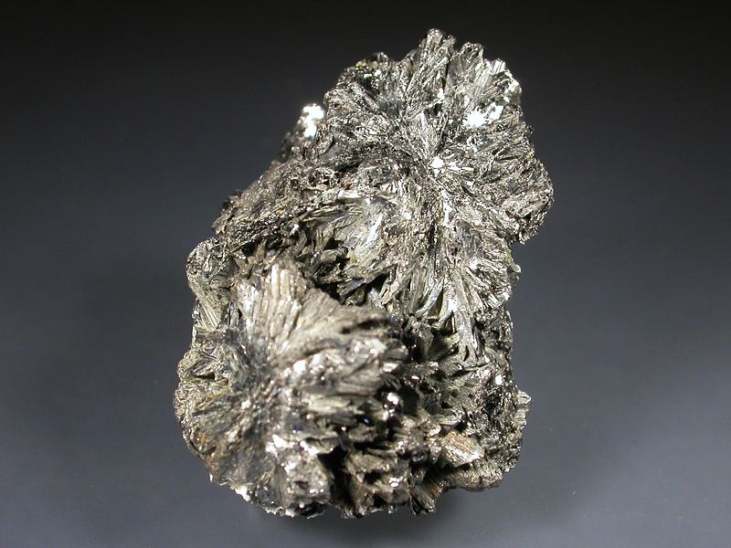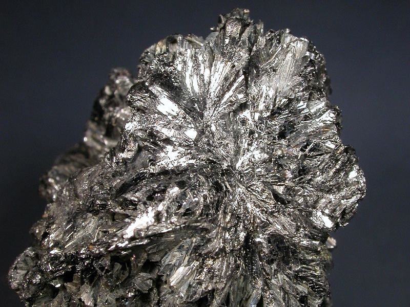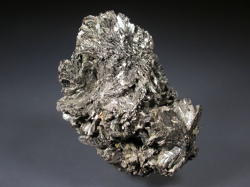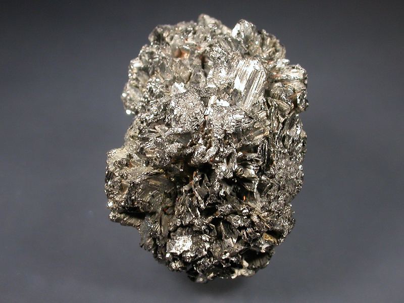 The specimen is composed entirely of radiating, bladed franckeite crystals reaching 4mm in length. Excellent lustre and some fascinating textures close up with twinning, lamellar growth and crystals bent around the terminations of others. Some scuffs at the edges but overall in good condition and an attractive thumbnail of this rare sulphosalt.Data last checked on 11th Aug 2021 - specimen may no longer be available