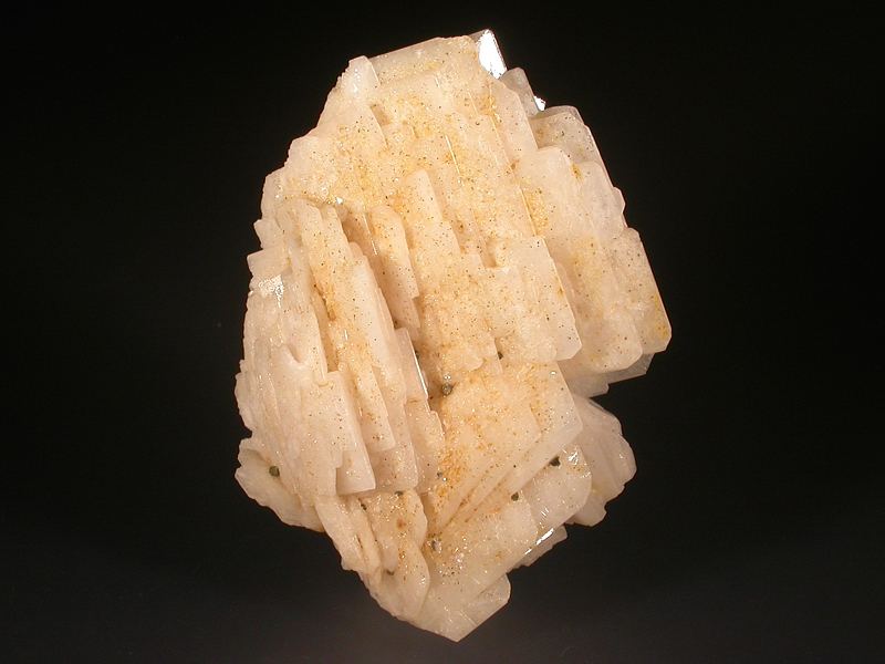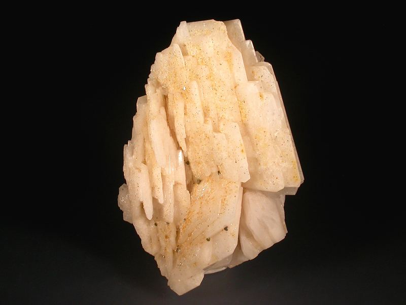 Lustrous white to cream coloured baryte with sharp tabular crystlas showing parallel growth. There is a scattering of chalcopyrite, transparent quartz and an unidentified orange phase (ankerite?) crystals Data last checked on 11th Aug 2021 - specimen may no longer be available