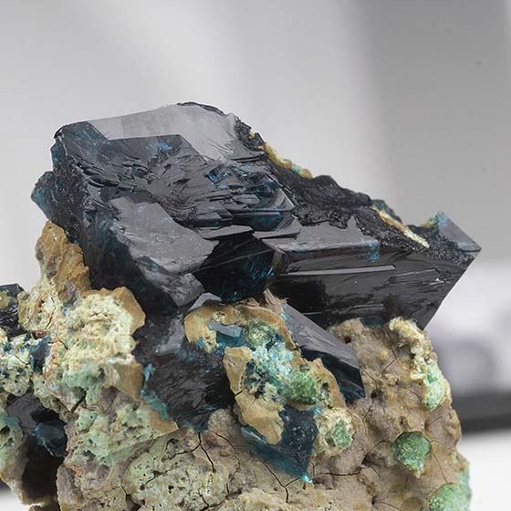 Very choice for the species, sparkling blue crystals of veszelyite across the top of this matrix. In good condition with minimal micro-chipping present. Mounted for display in a perky box and will ship as shown.Data last checked on 11th Aug 2021 - specimen may no longer be available