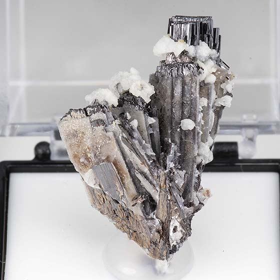 very choice spray of lustrous sharp terminated hubnerite crystals with minor quartz. This is excellent for the locality as this is not been acid treated to remove overlying matrix like most. Collected in September, 2008. Mounted for display in a Perky Box and will ship as shown.Data last checked on 11th Aug 2021 - specimen may no longer be available