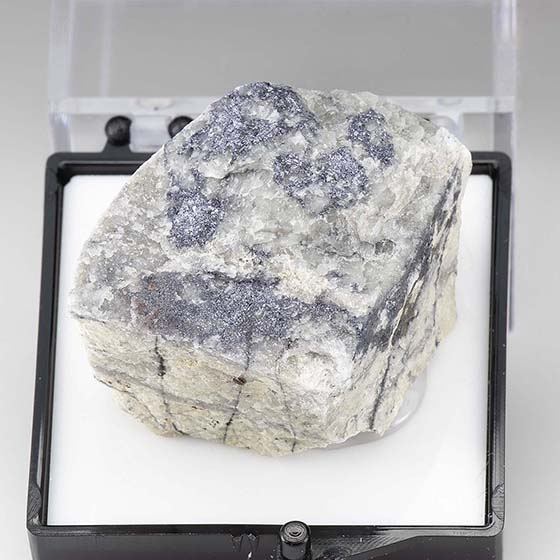 Bright metallic masses of molybdenite throughout this drill core section matrix. Very interesting locality example for the species, said to have come from drill hole number 9 at the 2200 foot level at this famous locality. Mounted for display in a perky box and will ship as shown.Data last checked on 11th Aug 2021 - specimen may no longer be available