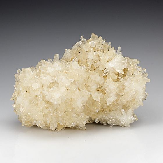 Sparkling scalenohedral crystals of gemmy calcite to 0.5 cm in size crystallized all around with fluorite. In good condition.Data last checked on 11th Aug 2021 - specimen may no longer be available