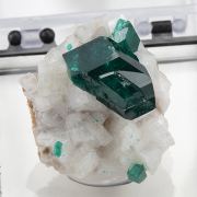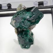 Glistening beautiful green crystals of dioptase to 0.9 cm in size on dolomite with duftite. This is in great condition and very pretty. Mounted for display in a perky box and will ship as shown.Data last checked on 11th Aug 2021 - specimen may no longer be available