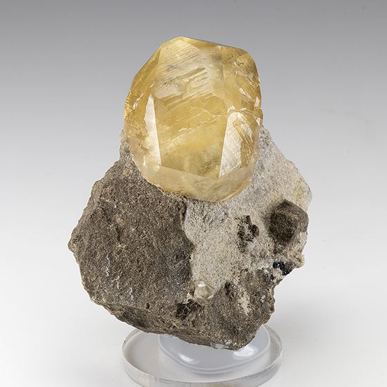 Classic Indiana specimen with a gemmy double terminated calcite crystal 2.8 cm in size beautifully set on matrix. In great condition.Data last checked on 11th Aug 2021 - specimen may no longer be available