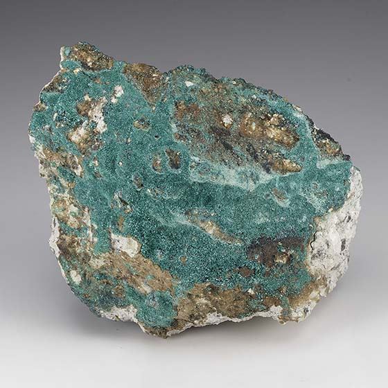 The top of this matrix very richly scattered with bluish green micro crystallized botallackite. Good rich hand specimen for the species.Data last checked on 11th Aug 2021 - specimen may no longer be available