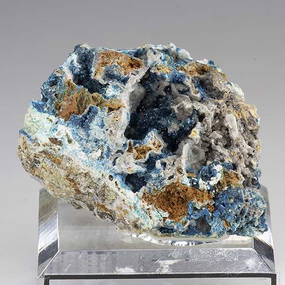 Sparkling blue micro crystals of veszelyite across this matrix. Very good for the species.Data last checked on 11th Aug 2021 - specimen may no longer be available