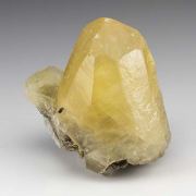 Light yellow to colorless gem scalenohedral crystals of calcite to 11.0 cm in length on matrix. The prominent crystal shows very sharp defined twinning. The secondary crystal is cleaved on one termination.Data last checked on 11th Aug 2021 - specimen may no longer be available