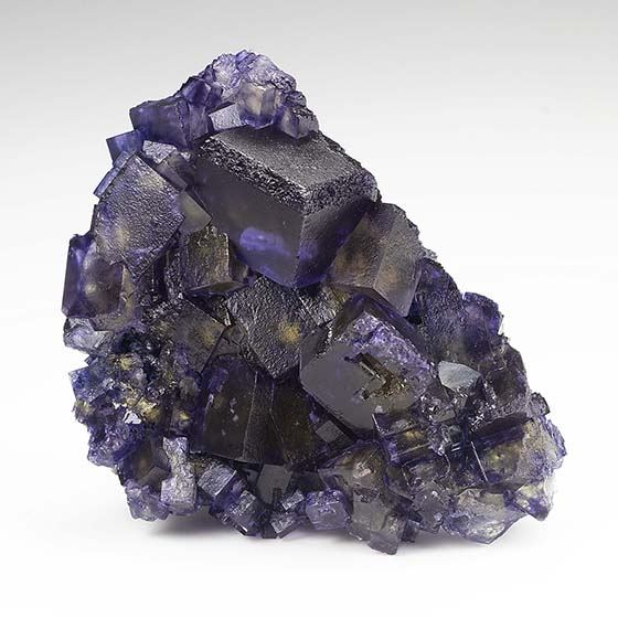 Very pretty mostly gemmy semi lustrous cubic purple crystals of fluorite to 2.5 cm on edge across the top of this matrix. This shows interesting beveled edges on the prominent cubic crystals. The interior color seems to be dark amber. In good condition.Data last checked on 11th Aug 2021 - specimen may no longer be available
