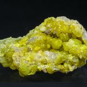 Brilliant green botryoidal crystallized pseudomalachite on crystallized quartz with sparse green crystals of atacamite.Data last checked on 11th Aug 2021 - specimen may no longer be available