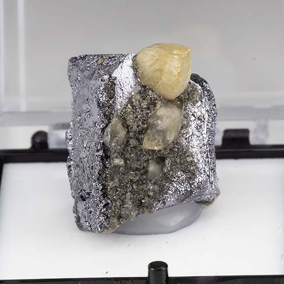 Fine loose galena crystal with small calcite crystals. In great condition. Mounted for display in a perky box and will ship as shown.Data last checked on 11th Aug 2021 - specimen may no longer be available