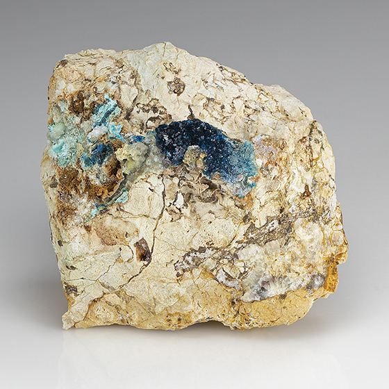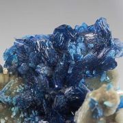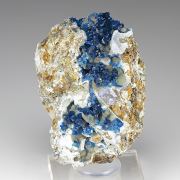 A grouping of sparkling deep blue veszelyite crystals 1.2 cm across on matrix with light blue crystallized theisite and minor hemimorphite. In good condition and quite nice for these rare minerals.Data last checked on 11th Aug 2021 - specimen may no longer be available