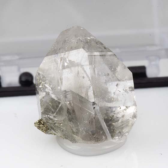 Glassy gem double terminated quartz crystal with minor pyrite. In great condition. Mounted for display in a perky box and will ship as shown.Data last checked on 11th Aug 2021 - specimen may no longer be available