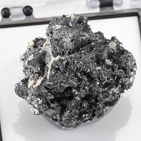 Brilliant lustrous crystals of metallic tetrahedrite to 0.7 cm in size on matrix with pyrite and quartz. In excellent condition in very fine for the species from this locality. Mounted for display in a perky box and will ship as shown.Data last checked on 11th Aug 2021 - specimen may no longer be available