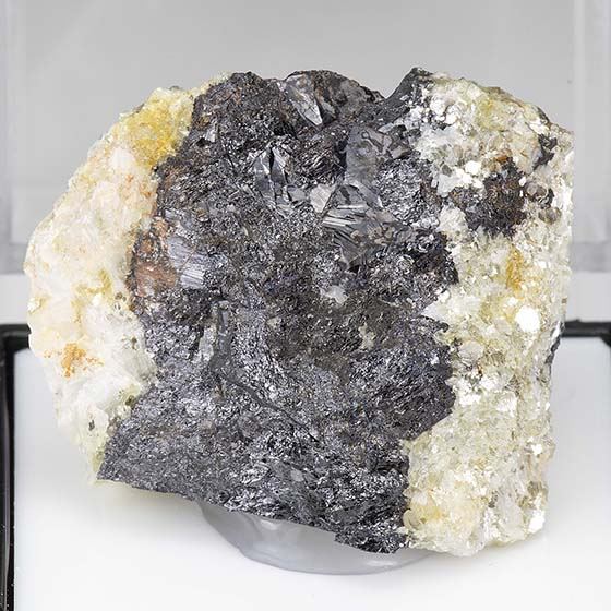 Rich black masses throughout this matrix with muscovite and albite. Collected in April, 2002, the identity has been confirmed. Mounted for display in a perky box and will ship as shown.Data last checked on 11th Aug 2021 - specimen may no longer be available