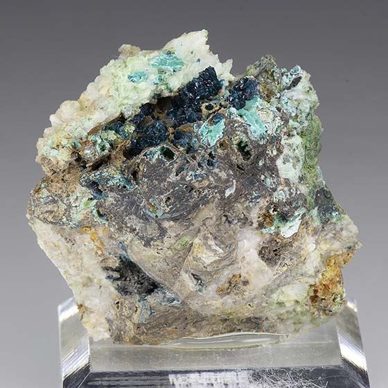 Sparkling blue micro crystals of veszelyite across this matrix. Very good for the species.Data last checked on 11th Aug 2021 - specimen may no longer be available