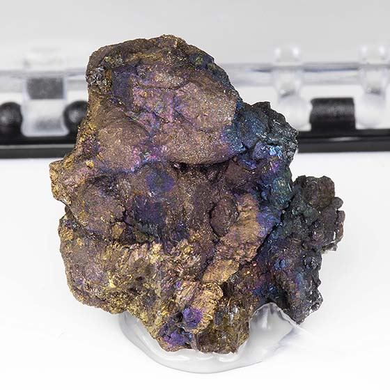 Fine grouping of iridescent crystallized chalcocite. Nice for the short-lived locality. In very good condition. Mounted for display in a perky box and will ship as shown.Data last checked on 11th Aug 2021 - specimen may no longer be available