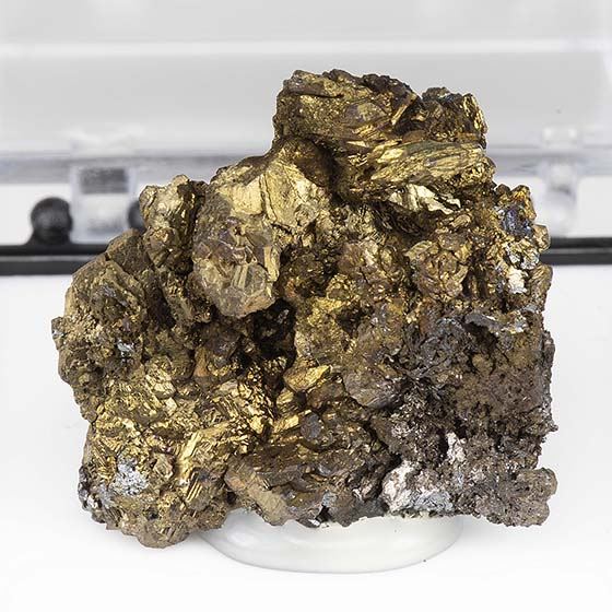 Fine grouping of iridescent crystallized chalcocite. Nice for the short-lived locality. In very good condition with very slight micro-chipping present. Mounted for display in a perky box and will ship as shown.Data last checked on 11th Aug 2021 - specimen may no longer be available