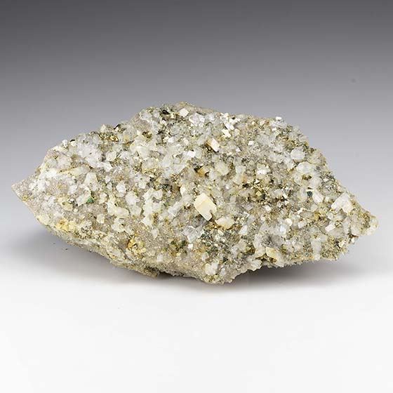 Colorless glassy gemmy crystals of augelite to 0.4 cm in size across the top of this matrix with crystallized barite, pyrite, and quartz. Good rich example for the species from this locality.Data last checked on 11th Aug 2021 - specimen may no longer be available