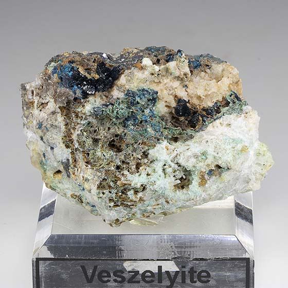 Sparkling blue micro crystals of veszelyite across this matrix. Very good for the species.Data last checked on 11th Aug 2021 - specimen may no longer be available