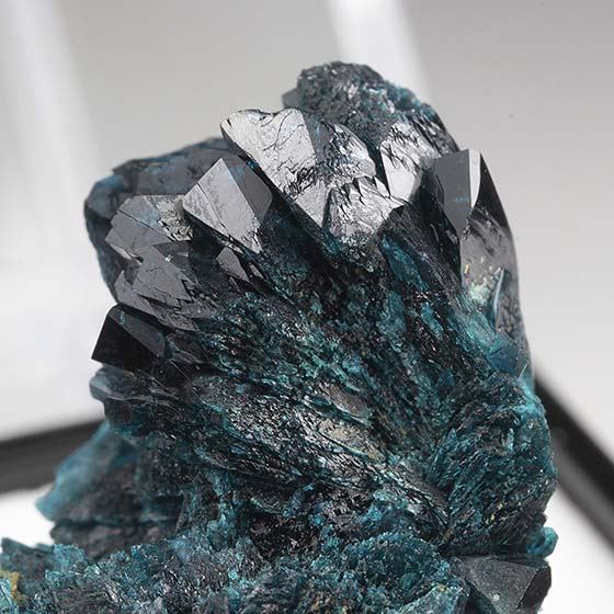 Very choice for the species, sparkling blue crystals of veszelyite across the top of this matrix. In good condition with minimal micro-chipping present. Mounted for display in a perky box and will ship as shown.Data last checked on 11th Aug 2021 - specimen may no longer be available