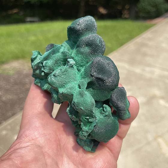 Beautiful deep green botyroidal and crystallized malachite. In great condition, complete all around with no points of attachment. The quality is very high.Data last checked on 11th Aug 2021 - specimen may no longer be available