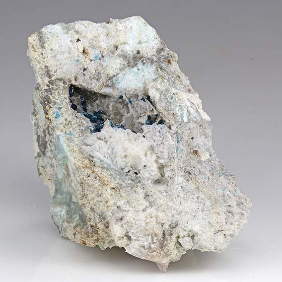 Sparkling blue micro crystals of veszelyite across this matrix. Very good for the species.Data last checked on 11th Aug 2021 - specimen may no longer be available
