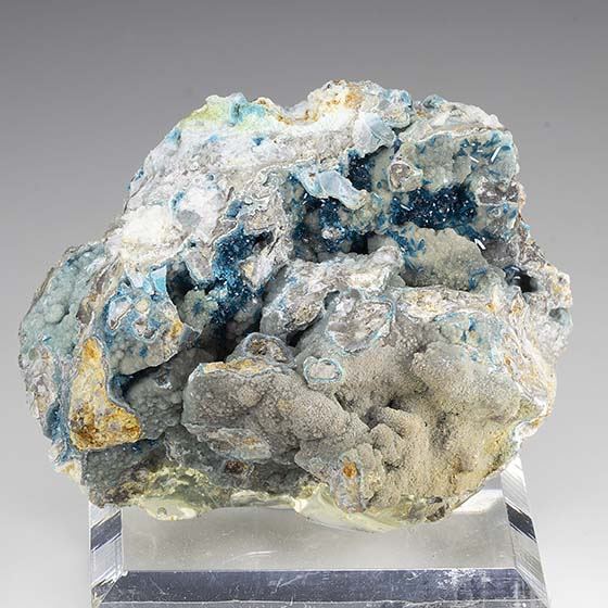 Sparkling blue micro crystals of veszelyite across this matrix. Very good for the species.Data last checked on 11th Aug 2021 - specimen may no longer be available