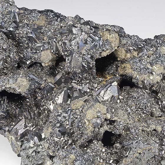 Numerous lustrous crystals of bournonite to almost 1.0 cm in size throughout this matrix with pyrite. In good condition.Data last checked on 11th Aug 2021 - specimen may no longer be available