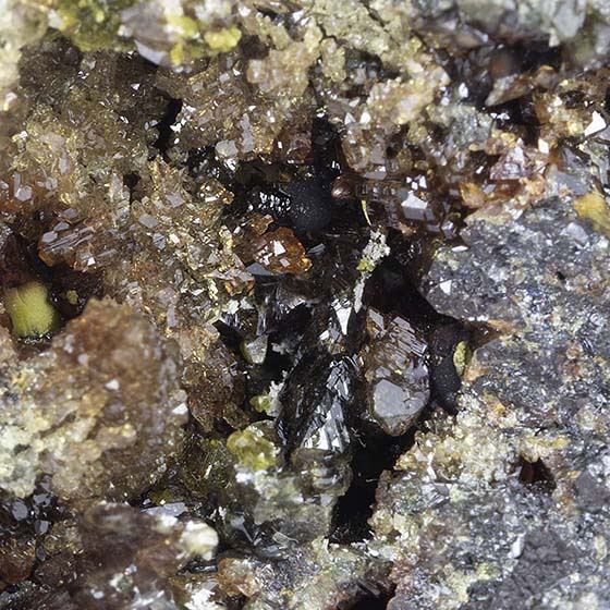 Choice micro crystals scattered throughout small shallow open pockets in this matrix. Previous label from Minerals Unlimited.Data last checked on 11th Aug 2021 - specimen may no longer be available