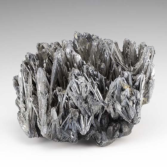 Very choice cluster of thick metallic crudely terminated crystals of zinkenite. Excellent for the species.Data last checked on 11th Aug 2021 - specimen may no longer be available
