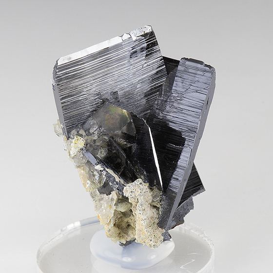 A wonderful example for the species with brilliant lustrous bladed crystals of brookite arrange nicely on matrix. At first glance one might think it tiny chip is present on one crystal corner, upon close inspection you will see that this is still natural and the piece is in great condition. From 2004.Data last checked on 11th Aug 2021 - specimen may no longer be available