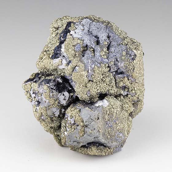 A cluster of semi lustrous octahedral galena crystals partially coated with micro pyrite. In good condition.Data last checked on 11th Aug 2021 - specimen may no longer be available