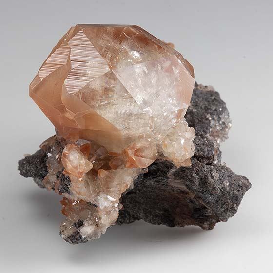 Absolutely superb beautiful glassy gem crystals of calcite to 3.1 cm in size across the top of this matrix. Beautifully accented with a reddish-brown iron oxide, in super condition. From a recent find in China.Data last checked on 11th Aug 2021 - specimen may no longer be available