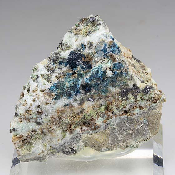 Sparkling blue micro crystals of veszelyite across this matrix. Very good for the species.Data last checked on 11th Aug 2021 - specimen may no longer be available