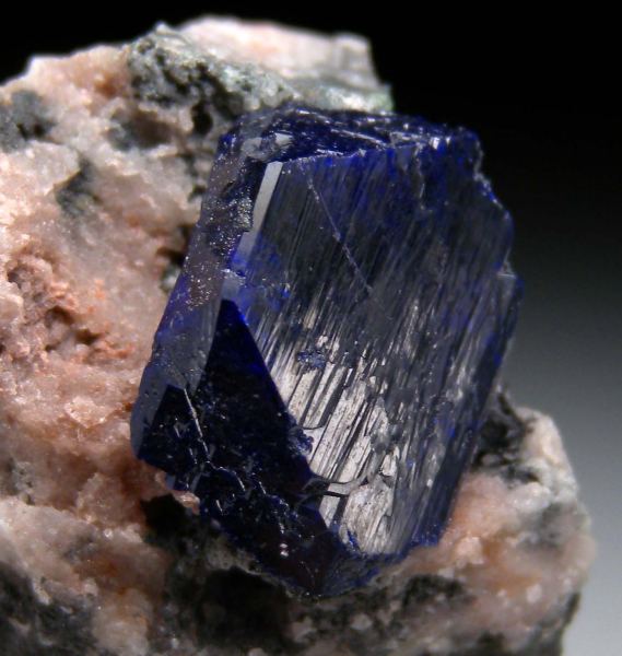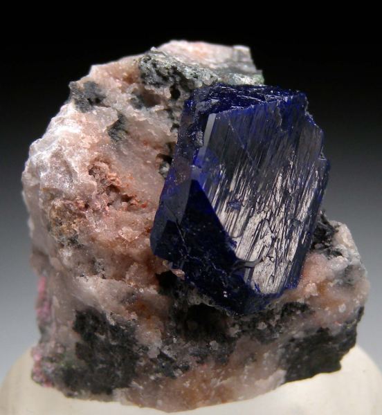Single 1.7cm crystal of Azurite on matrix. The Azurite crystal is euhedral with good luster. Good crystals of Azurite are rare for this locality!Data last checked on 17th Aug 2021 - specimen may no longer be available