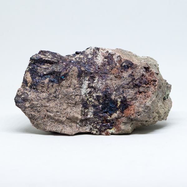 A sample of bornite from the Silver Monument Mine - while many specimens "bornite" on the market are not actually bornite, but chemically oxidized chalcopyrite, this is a bonafide sample of the mineral! The bornite shows a beautiful irridescence, grading from blue to purple to bronze.Data last checked on 31st Dec 2021 - specimen may no longer be available