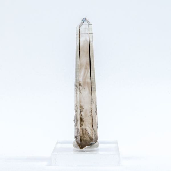 A single crystal of smoky quartz with wispy phantoms throughout the length of the crystal. There is some chipping and contacting.Data last checked on 31st Dec 2021 - specimen may no longer be available