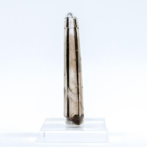 A single crystal of smoky quartz with wispy phantoms throughout the length of the crystal. There is some chipping and contacting.Data last checked on 31st Dec 2021 - specimen may no longer be available
