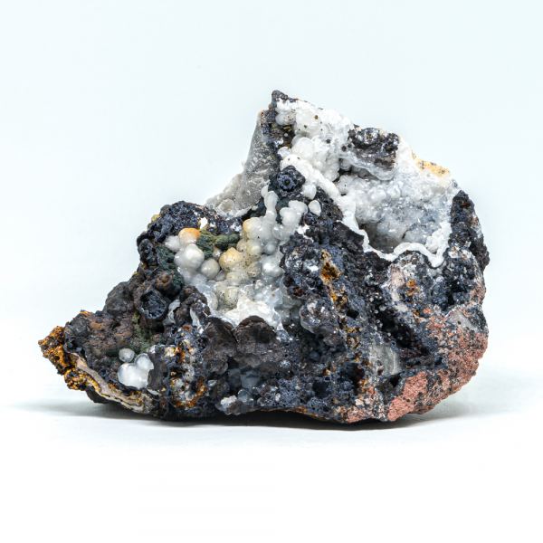 White smithsonite with a surficial coating of orange iron oxides from the famous Kelly Mine.Data last checked on 31st Dec 2021 - specimen may no longer be available