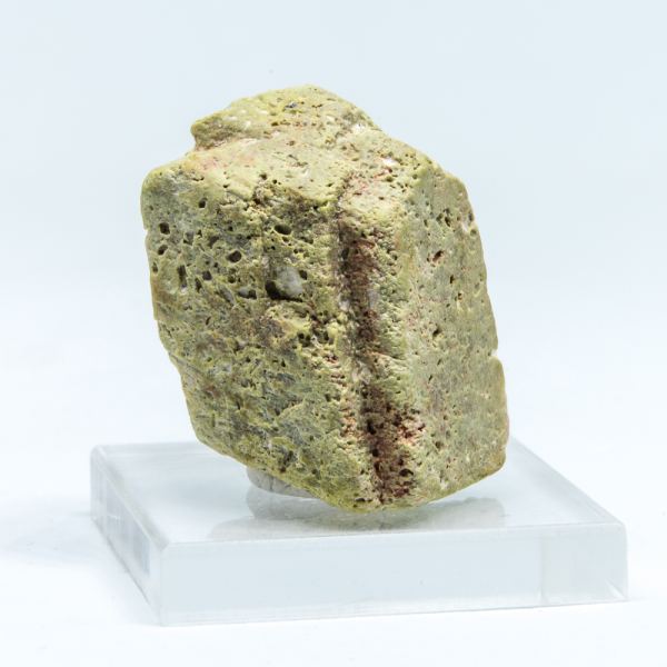 From an exciting new find: pistachio green pseudomorphs of epidote replacing orthoclase crystals! This specimen features a replacement of parallel growth orthoclase crystals. There is noticeable damage; the bottom of the specimen is incomplete. While this type of alteration is not unusual, we are unaware of any other worldwide locality that has produced large, euhedral pseudomorphs like these. Collected by Phil Simmons and Erin Delventhal in November of 2020. XRD analysis of this material has pointed towards an undetermined range within the epidote-clinozoisite solution series, as well as the presence of orthoclase, sanidine, and adularia in samples that were not replaced.Data last checked on 31st Dec 2021 - specimen may no longer be available