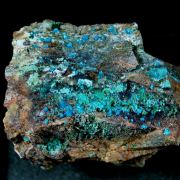 Chrysocolla pseudomorphs after cubic crystals of boleite - an unusual pseudomorph, as boleite is a fairly rare mineral, and a delight for the pseudomorph collector for having color! These specimens come from an outcrop near the Amelia Mine, though not in the mine proper.Data last checked on 31st Dec 2021 - specimen may no longer be available
