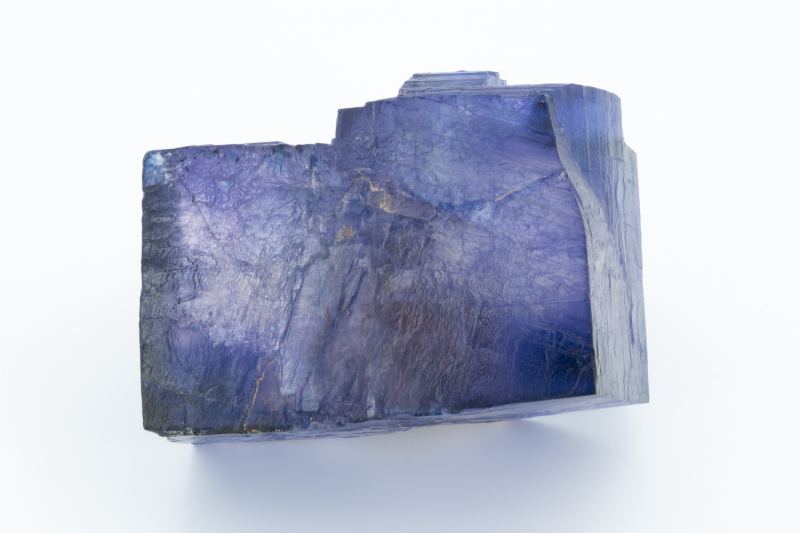 A single, large crystal with blue and purple coloration. This is one of the largest fine crystals found. A back corner of the crystal is incomplete where it was contacting the matrix, and there is a small chip on the upper left corner.Data last checked on 31st Dec 2021 - specimen may no longer be available