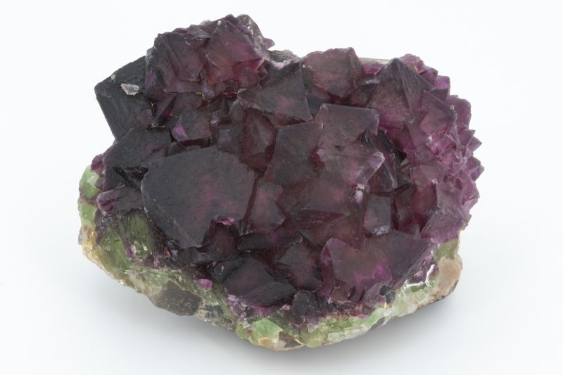A large plate of the classic raspberry and apple-green colored fluorite octahedrons to 58 mm from the Surprise mine. This is one of the largest specimens we have handled of this material, and is one of the very best as well. It has contacting around the perimeter of the specimen and a couple of crystals with small dings, but it is in great condition for its size.Data last checked on 31st Dec 2021 - specimen may no longer be available