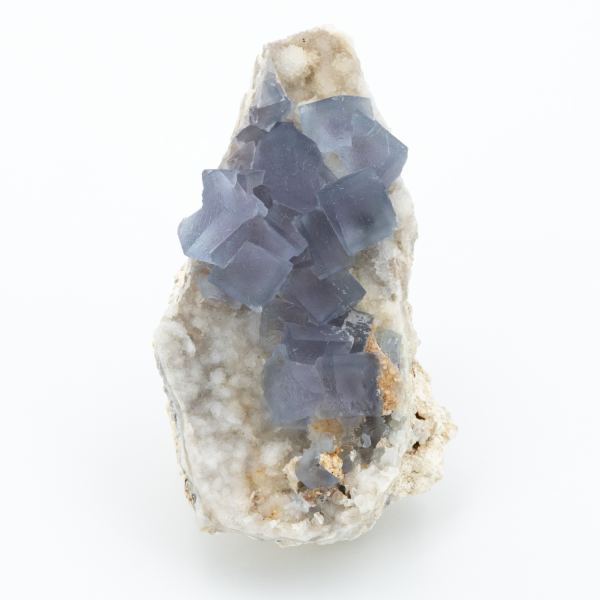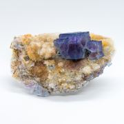 A group of zoned intergrown fluorite crystals to 15 mm on edge on druzy quartz matrix. There is contacting and incomplete crystals on the perimeter of the specimen. Collected in 2018.Data last checked on 31st Dec 2021 - specimen may no longer be available
